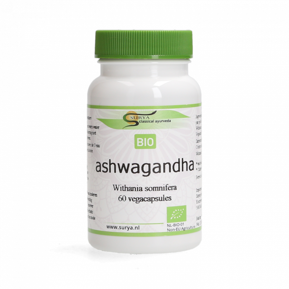 Ashwagandha Bio es un adaptógeno ayurvédico natural que ayuda a reducir el estrés, equilibrar cuerpo y mente y aumentar la energía vital. Elaborada con Withania somnifera de cultivo ecológico, 100% pura y apta para veganos.